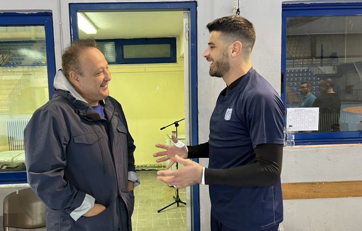Κοντά στους διεθνείς, στην απογευματινή προπόνηση της Εθνικής ανδρών, στη Μίκρα, βρέθηκε ο Α' Αντιπρόεδρος της Ελληνικής Ολυμπιακής Επιτροπής, Στέλιος Αγγελούδης.