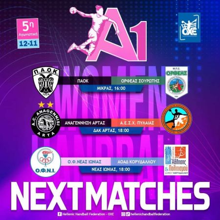 Τρεις αναμετρήσεις περιλαμβάνει το πρόγραμμα του Σαββάτου, για την 5η αγωνιστική της Α1 γυναικών.
