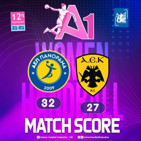 Σπουδαία νίκη με 32-27 πανηγύρισε το Πανόραμα επί της ΑΕΚ, για τη 12η αγωνιστική της Α1 γυναικών. Με αυτό το αποτέλεσμα η ομάδα της Θεσσαλονίκης επιβεβαιώσε την ανοδική της πορεία, έχοντας τρεις νίκες στα τελευταία πέντε ματς.