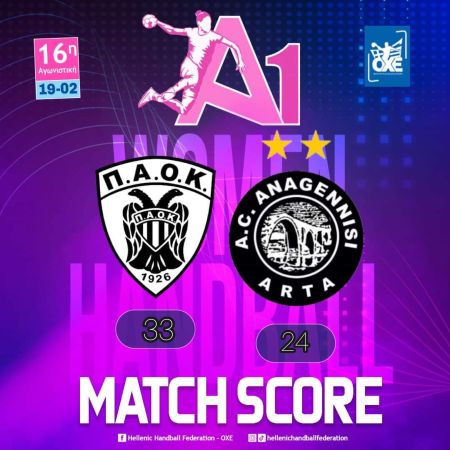 Με νίκη συνέχισε και στην 16η αγωνιστική της Α1 Γυναικών ο ΠΑΟΚ που επικράτησε με 33-24 της Αναγέννηση Άρτας.