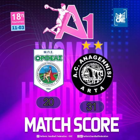 Στο κλειστό των Βασιλικών έπεσε η αυλαία της κανονικής διάρκειας στην Α1 γυναικών, με την Αναγέννηση Άρτας να επικρατεί του Ορφέα Σουρωτής με 20-31.