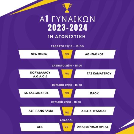Aρχίζει αύριο το 43ο πρωτάθλημα της Α1 Γυναικών με δύο αναμετρήσεις στην Αττική.