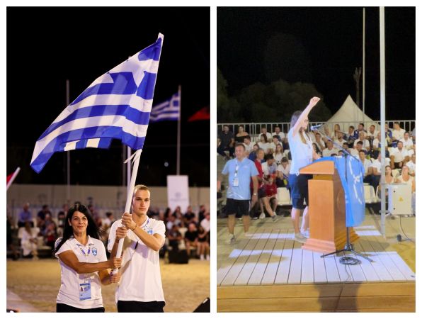 Υπερήφανες στιγμές για την Ομοσπονδία Χειροσφαιρίσεως Ελλάδος ήταν η είσοδος της ελληνικής αποστολής στο "Karteros Beach Sports Center" με την Ελένη Ποιμενίδου να είναι η σημαιοφόρος της Ελλάδας, ενώ λίγο αργότερα η Μάγδα Κεπεσίδου απήγγειλε τον όρκο των αθλητών.
