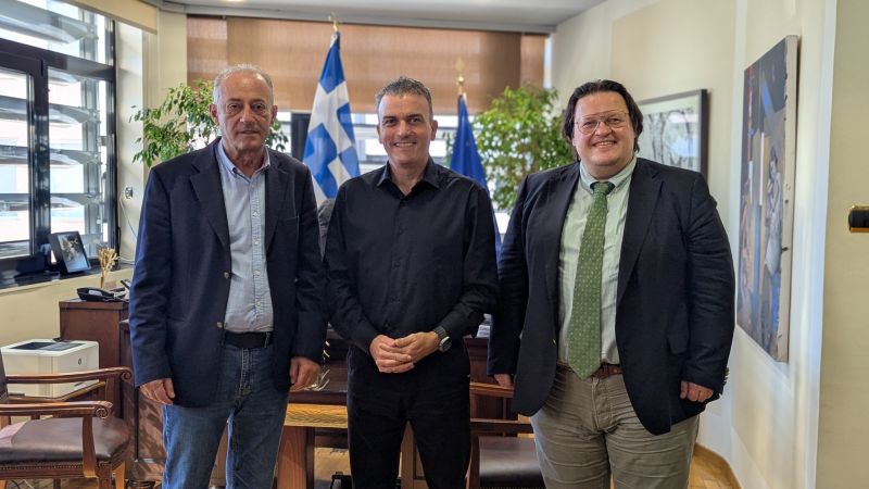 Ο Πρόεδρος της Ομοσπονδίας Χειροσφαιρίσεως Ελλάδος Κώστας Γκαντής και ο νομικός σύμβουλος της Ομοσπονδίας Θωμάς Παπαλιάγκας έγιναν σήμερα δεκτοί στο Δημαρχείο Λάρισας από το Δήμαρχο Λαρισαίων Θανάση Μαμάκο.