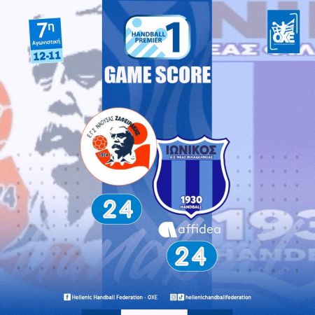 Με ένα γκολ του Αλέξανδρου Κουκουλά στο 59:25, ο Ιωνικός πήρε ισοπαλία 24-24 στην έδρα του Ζαφειράκη, στο πλαίσιο της 7ης αγωνιστικής της Handball Premier.