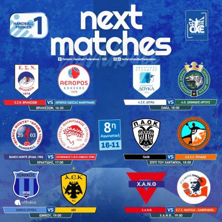 Όγδοη στροφή σατο πρωτάθλημα της Handball Premier με έξι ενδιαφέρουσες αναμετρήσεις, το απόγευμα της Τετάρτης (16/11)