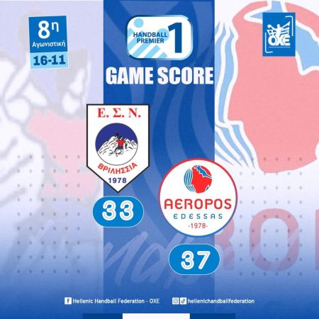 Επιστροφή στις νίκες για τον Αερωπό Έδεσσας, που επικράτησε στα Βριλήσσια με 33-37 για την 8η αγωνιστική της Handball Premier και πήρε βαθμολογική ανάσα.