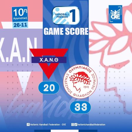 Το νικηφόρο σερί του συνέχισε ο Ολυμπιακός ΣΦΠ/Όμιλος Ξυνή που μετά την ήττα από την ΑΕΚ στην πρεμιέρα της Handball Premier μετράει 9 νίκες.