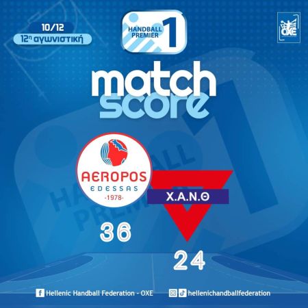 Την τρίτη συνεχόμενη νίκη του στη Handball Premier πανηγύρισε ο Αερωπός, που επικράτησε στην Έδεσσα της ΧΑΝΘ με 36-24, στο πλαίσιο της 12ης αγωνιστικής.
