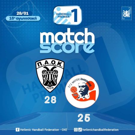 Επιστροφή στις νίκες για τον ΠΑΟΚ μετά την ήττα- αποκλεισμό από τον Δούκα στο Κύπελλο Ανδρών. Ο «Δικέφαλος» του Βορρά επικράτησε 28-25 του Ζαφειράκη Νάουσας για τη 16η αγωνιστική της Handball Premier.