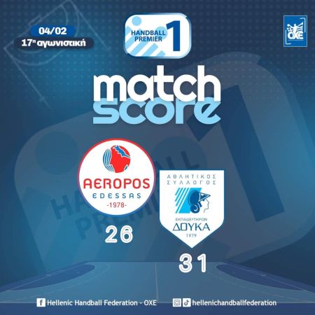 Στα θετικά αποτελέσματγα επέστρεψε ο ΑΣΕ Δούκα, που νίκησε στην Έδεσσα τον Αερωπό με 26-31, στο πλαίσιο της 17ης αγωνιστικής της Handball Premier.
