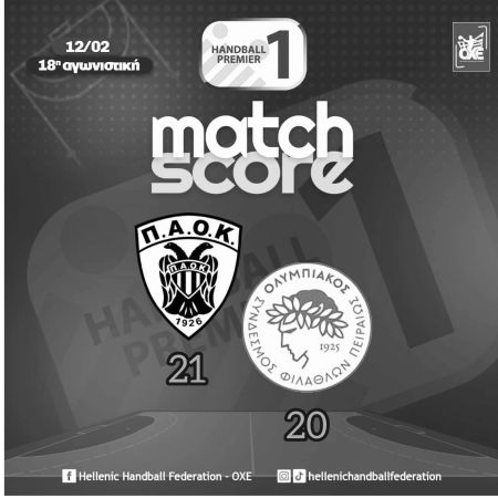 Ιστορική νίκη, την πρώτη του επί του Ολυμπιακού σημείωσε ο ΠΑΟΚ με 21-20 στο «Σπίτι του Χάντμπολ» για την 18η αγωνιστική της Handball Premier.