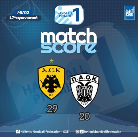 Tη μοναξιά της κορυφής της Handball Premier απολαμβάνει η ΑΕΚ μετά τη νίκη της με 29-20 επί του ΠΑΟΚ στο εξ’ αναβολής μας της 17ης αγωνιστικής που διεξήχθη στο ΟΑΚΑ.