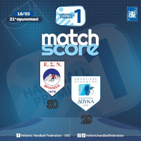 Τα Βριλήσσια έκαναν το καθήκον τους και πήραν σπουδαία νίκη επι του ΑΣΕ Δούκα με 30-29, στην προτελευταία αγωνιστική της Handball Premier.