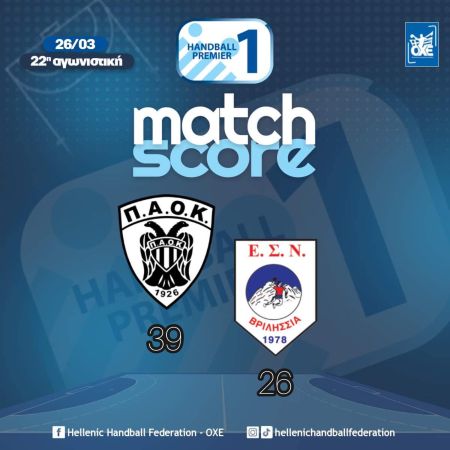 Mε νίκη ολοκλήρωσε την κανονική διάρκεια της Handball Premier ο ΠΑΟΚ που επικράτησε 39-26 των Βριλησσίων στη Θεσσαλονίκη.