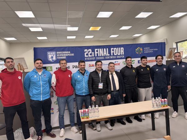 Δημήτρης Σταυρακάκης (Αναπληρωτής Ταμίας ΟΧΕ): «Εκ μέρους του Προέδρου της ΟΧΕ Κώστα Γκαντή και ολόκληρου του Διοικητικού Συμβουλίου σας καλωσορίζουμε στη συνέντευξη Τύπου. Να ευχαριστήσουμε το Δήμο Αγίων Αναργύρων- Καματερού και ιδιαίτερα τον Δήμαρχο Σταύρο Τσίρμπα για την άψογη συνεργασία και τη φιλοξενία. Να ευχηθούμε καλή τύχη και στους τέσσερις φιναλίστ. Το Final Four είναι ειδικού χειρισμού. Δεν θα εκδοθούν εισιτήρια παρά μόνο προσκλήσεις και τα μέτρα ασφαλείας θα είναι δρακόντεια. Ευχαριστούμε θερμά και την ΕΡΤ που θ μεταδώσει όλα τα παιχνίδια ζωντανά και ιδιαίτερα τον Διευθυντή του αθλητικού τμήματος Γιάννη Δάρα που βρίσκεται σήμερα εδώ. Ευχόμαστε να γίνει ένα όμορφο final Four».