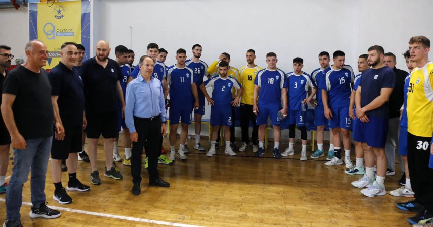 Ο γγΑ συνοδευόμενος από τον Πρόεδρο της ΟΧΕ Κώστα Γκαντή στο ημίχρονο του αγώνα συνομίλησε με τους διεθνείς και το τεχνικό επιτελείο, στους οποίους ευχήθηκε καλή επιτυχία στη μεγάλη διοργάνωση.