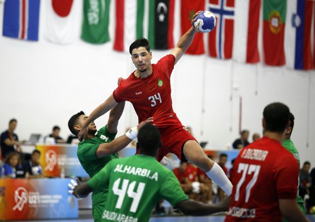 Με ατού την άμυνα τους, οι Μαροκινοί πέρασαν μπροστά στο σκορ στο 17΄με 10-6 , ωστόσο, βασιζόμενη στην αποτελεσματικότητα της στις γρήγορες επιθέσεις της, η Σαουδική Αραβία πλησίασε σε 11-10 στο 22΄ και σε 13-12 στο 26΄ ενώ το ημίχρονο έληξε με το Μαρόκο να έχει το προβάδισμα με 15-14.