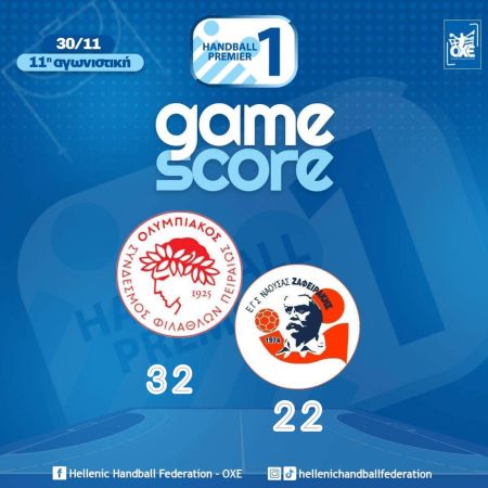 Τη 10η συνεχόμενη νίκη του στη Handball Premier σημείωσε ο Ολυμπιακός ΣΦΠ/Όμιλος Ξυνή επικρατώντας 32-22 του Ζαφειράκη Νάουσας στο ματς που άνοιξε την αυλαία της 11ης αγωνιστικής του πρωταθλήματος.