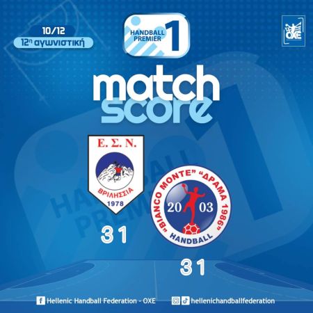 Βαθμούς και εντυπώσεις μοιράστηκαν Βριλήσσια και Δράμα στην πρεμιέρα του Β’ γύρου της Handball Premier μετά το ισόπαλο 31-31.