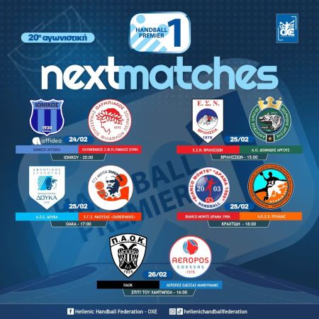 Σε τέσσερις... δόσεις διεξάγεται η 20η αγωνιστική της Handball Premier. Η αυλαία άνοιξε το βράδυ της Πέμπτης, στο κέντρο της Θεσσαλονίκης, όπου η ΑΕΚ επικράτησε της ΧΑΝΘ με 22-30.