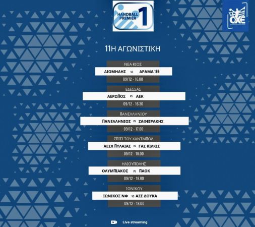 Με τη διεξαγωγή αύριο της 11ης αγωνιστικής και της εξ’ αναβολής αναμέτρησης ΑΕΚ- Ολυμπιακός το ερχόμενο Σάββατο (16/12), θα ολοκληρωθεί ο α’ γύρος του πρωταθλήματος της Handball Premier, ενώ από το μεγάλο ντέρμπι κορυφής θα προκύψει η ομάδα που θα κατακτήσει τον άτυπο τίτλο της πρωταθλήτριας χειμώνα.