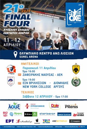 Αντίστροφα μετράει ο χρόνος για το 21ο Final Four του Κυπέλλου Ελλάδος Ανδρών που θα διεξαχθεί στο Ολυμπιακό Κέντρο Άνω Λιοσίων (Sunel Arena) το διάστημα 11-12 Απριλίου 2025.